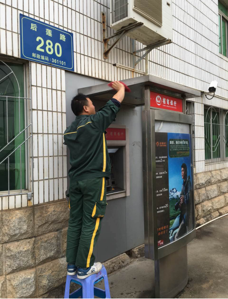 厦门洁尔保洁服务有限公司ATM机清洗团队,只为您在一个更加整齐、洁净的ATM间里舒适的处理您的银行业务,从此,让您爱上在ATM机里的时光。我们的离行式ATM机清洗是怎么做的呢?(1)先用铲刀把ATM机身及墙面、蔗阳棚…
